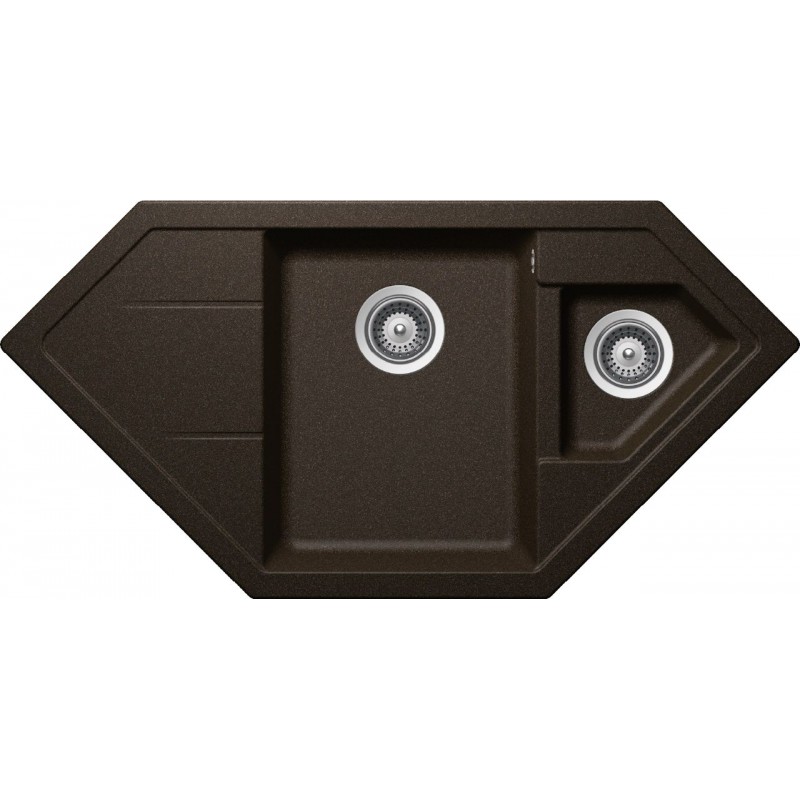 Rohový granitový dřez, provedení Bronze, rozměr 1 002 x 500 mm, vana 341 x 430 x 200 mm, horní montáž, do rohové skříňky 90x90 cm, s excentrem.