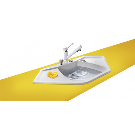 Tento granitový dřez Sinks je vyroben z jemného žulového písku s příměsí barviva a je pojen vysoce kvalitním akrylátovým pojivem. Dřez snadno snese teploty až 280 C, je odolný proti UV záření a velmi odolný proti vrypu a poškrábání. Dřez vyniká mimořádnou pevností a tvrdostí materiálu a schopností odolat velkým teplotním šokům.