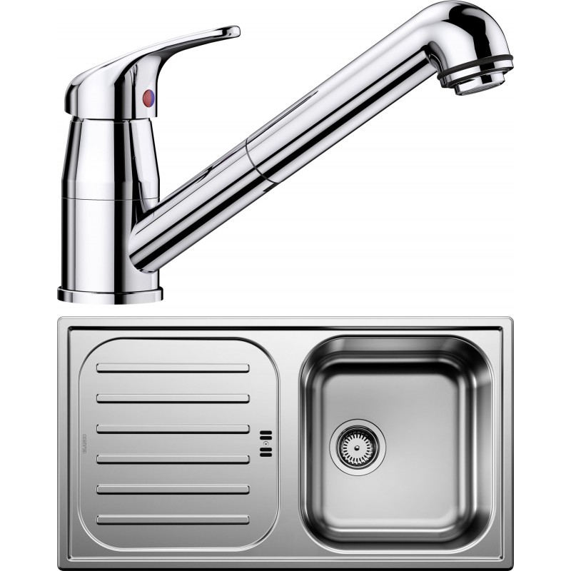 Cenově zvýhodněný set dřezu a baterie Blanco 02 - B - obsahuje nerezový dřez s odkapem Flex Pro 45 S Přírodní lesk a baterii s vytahovací koncovkou Daras-S Chrom.