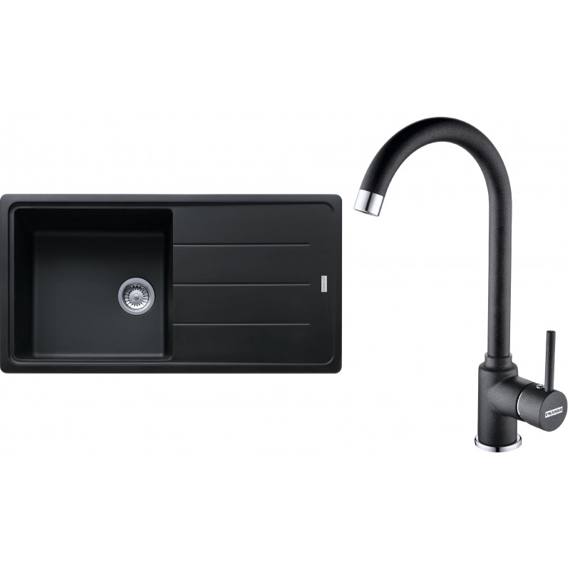 Cenově zvýhodněný set dřezu a baterie Franke G174 - obsahuje granitový dřez s odkapem BFG 611 Onyx a baterii FP 9000.071 Onyx.