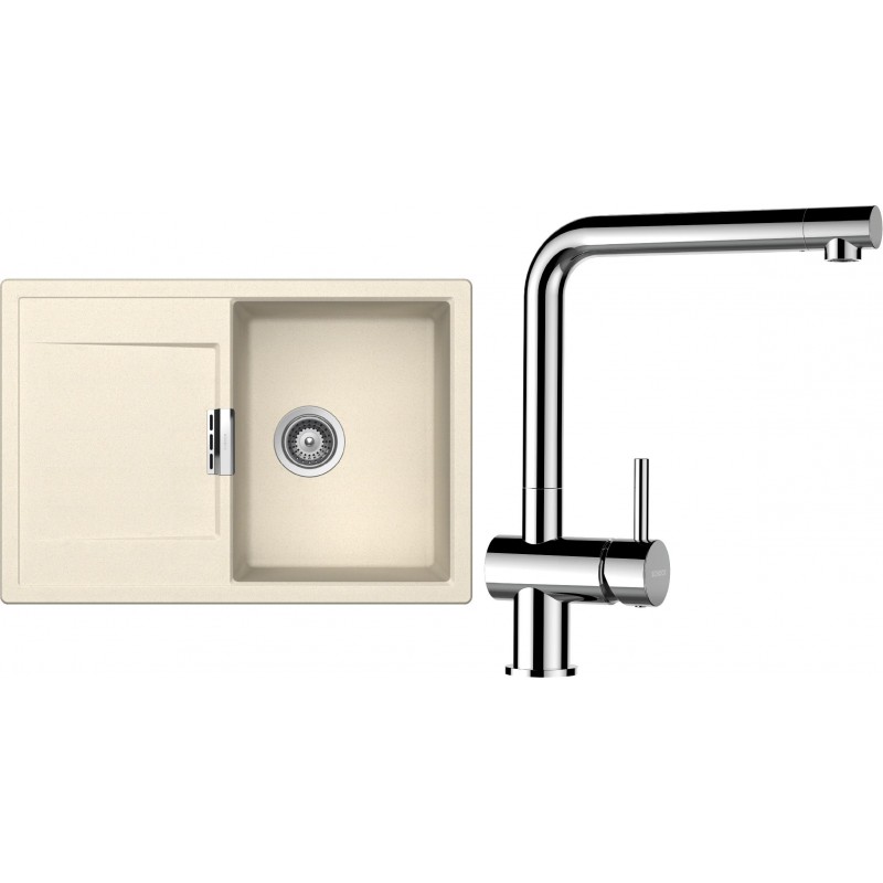 Cenově zvýhodněný set dřezu a baterie Schock S5-12 - obsahuje granitový dřez s odkapem Mono D-100S Magnolia a baterii Epos Chrom.