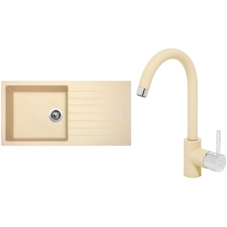 Cenově zvýhodněný set dřezu a baterie Sinks - obsahuje granitový dřez s odkapem Perfecto 1000 Sahara 50 a baterii Mix 35 Sahara 50.