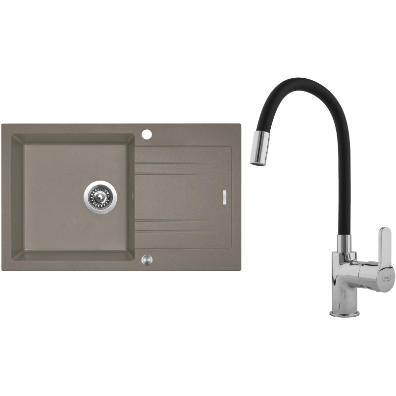 Cenově zvýhodněný set dřezu a baterie Sinks G4554XC - obsahuje granitový dřez s odkapem Linea 780 XC Truffle 54 a baterii Flexia lesklá.