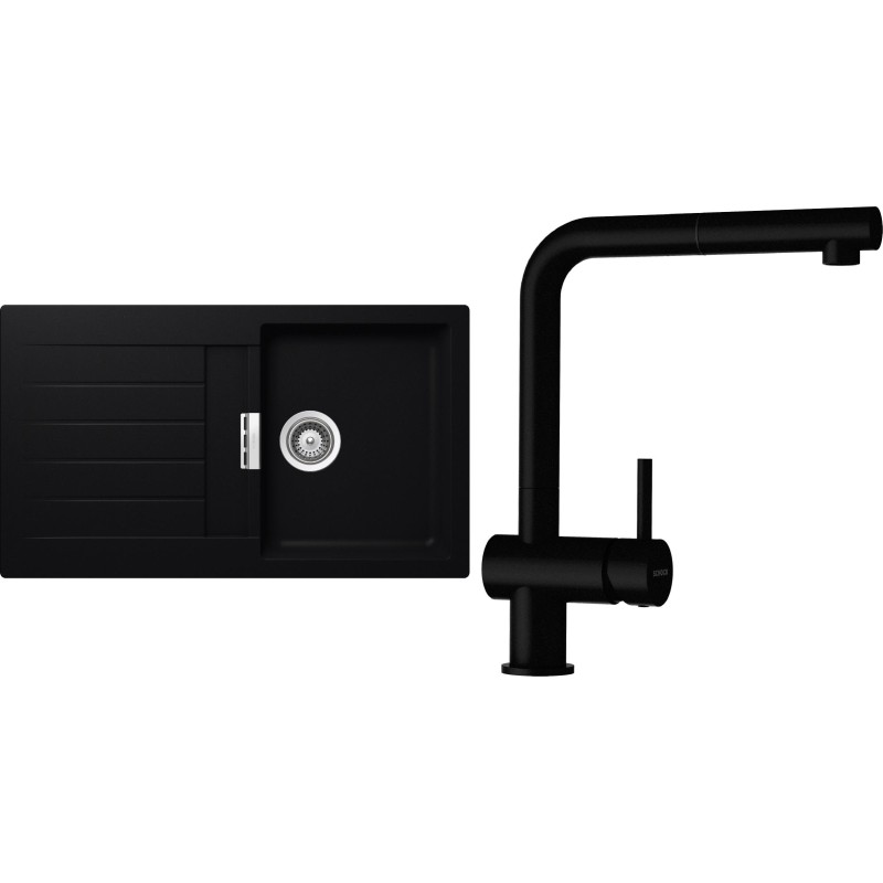 Cenově zvýhodněný set dřezu a baterie Schock S1-2 - obsahuje granitový dřez s odkapem Signus D-100 Puro a baterii s vytahovací koncovkou Epos.120 Puro.