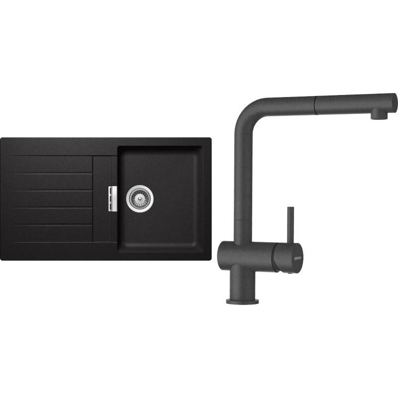 Cenově zvýhodněný set dřezu a baterie Schock S1-2 - obsahuje granitový dřez s odkapem Signus D-100 Stone a baterii s vytahovací koncovkou Epos.120 Stone.
