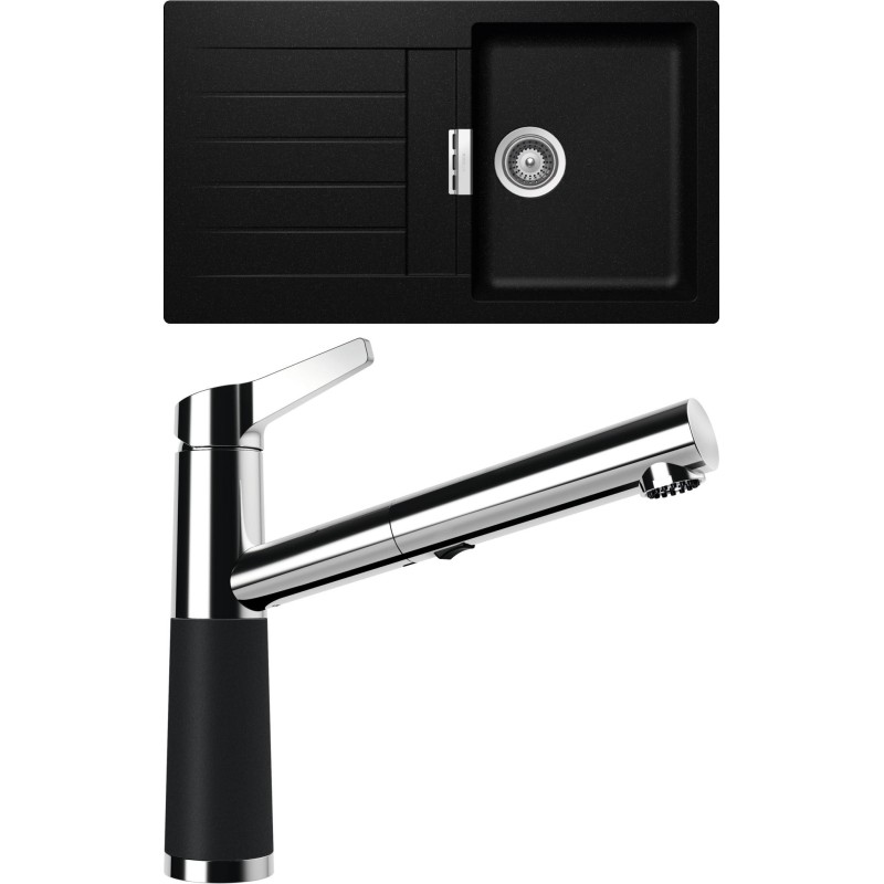 Cenově zvýhodněný set dřezu a baterie Schock S1-5 - obsahuje granitový dřez s odkapem Signus D-100 Magma a baterii se sprchou SC-510.120 Magma.