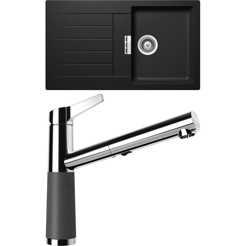 Cenově zvýhodněný set dřezu a baterie Schock S1-5 - obsahuje granitový dřez s odkapem Signus D-100 Stone a baterii se sprchou SC-510.120 Stone.