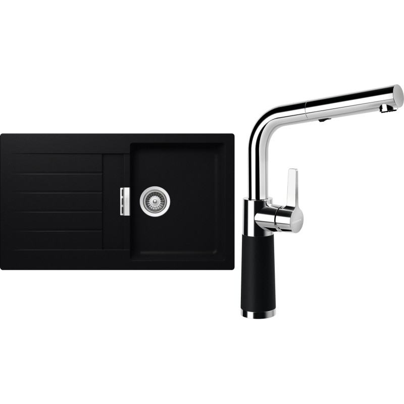 Cenově zvýhodněný set dřezu a baterie Schock S1-11 - obsahuje granitový dřez s odkapem Signus D-100 Puro a baterii se sprchou SC-540.120 Puro.