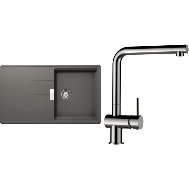 Cenově zvýhodněný set dřezu a baterie Schock S16-3 - obsahuje granitový dřez s odkapem Tia D-100 Silverstone a baterii Epos Nerezový vzhled.