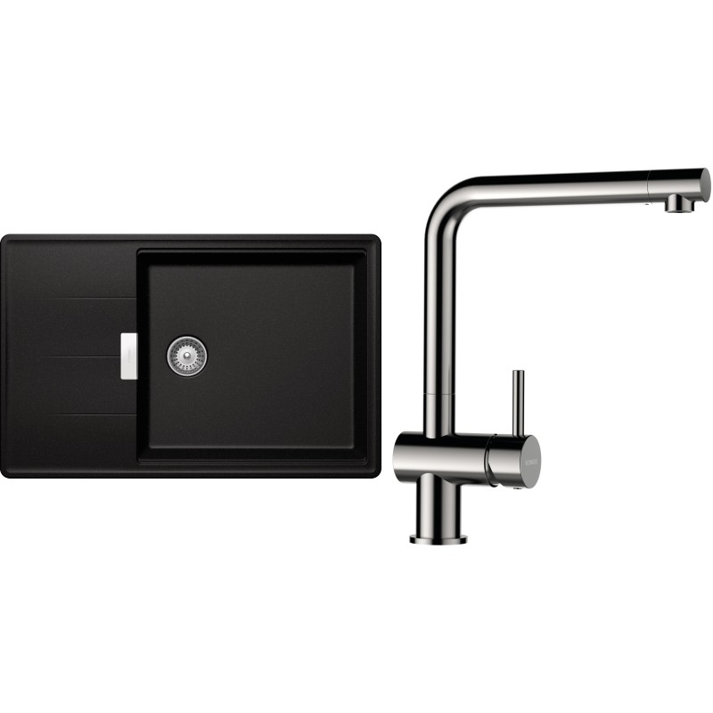Cenově zvýhodněný set dřezu a baterie Schock S17-3 - obsahuje granitový dřez s odkapem Tia D-100LS Magma a baterii Epos Nerezový vzhled.