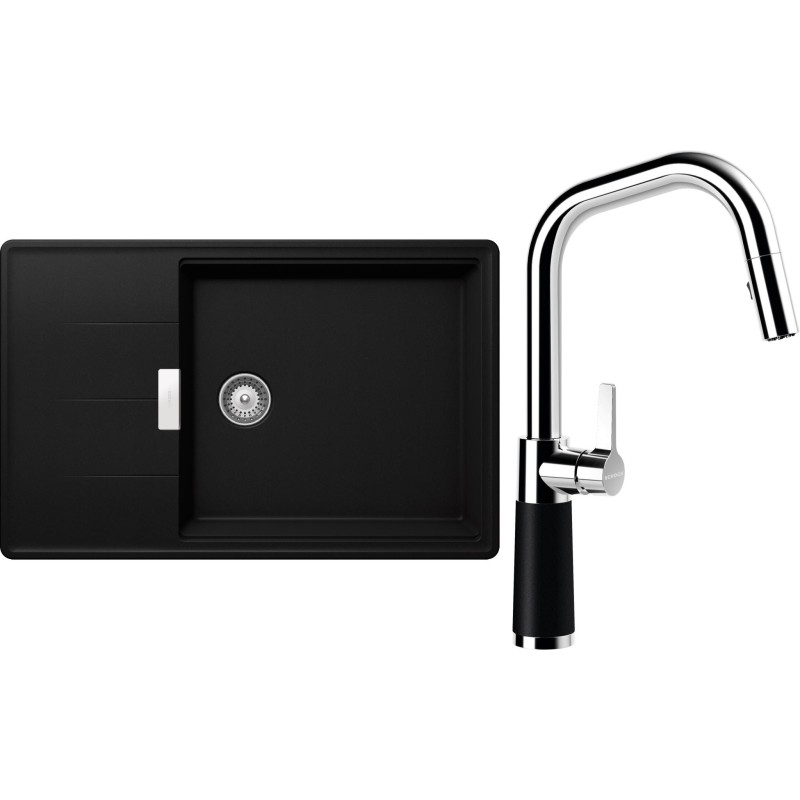 Cenově zvýhodněný set dřezu a baterie Schock S17-9 - obsahuje granitový dřez s odkapem Tia D-100LS Puro a baterii se sprchou SC-530.120 Puro.