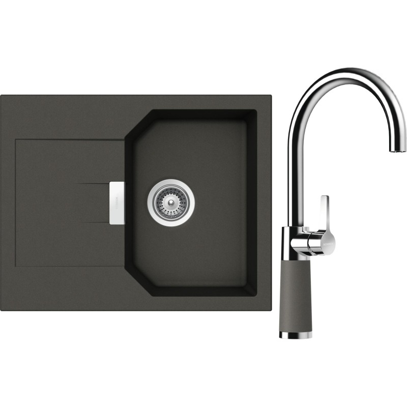 Cenově zvýhodněný set dřezu a baterie Schock S18-8 - obsahuje granitový dřez s odkapem Manhattan D-100XS Asphalt a baterii SC-520 Asphalt.