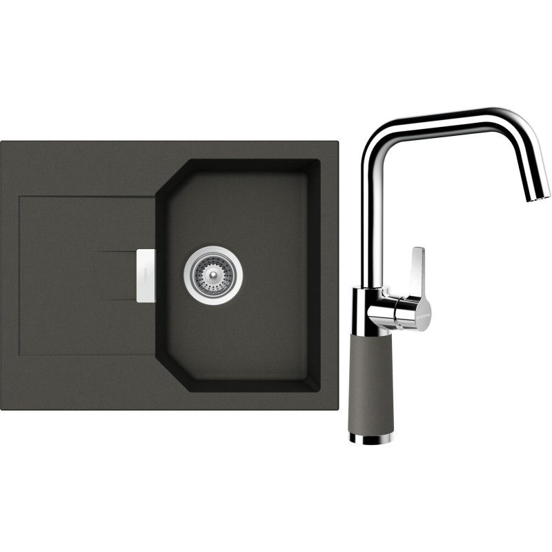 Cenově zvýhodněný set dřezu a baterie Schock S18-10 - obsahuje granitový dřez s odkapem Manhattan D-100XS Asphalt a baterii SC-530 Asphalt.