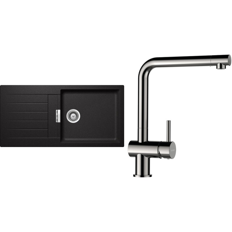 Cenově zvýhodněný set dřezu a baterie Schock S2-3 - obsahuje granitový dřez s odkapem Signus D-100L Stone a baterii Epos Nerezový vzhled.