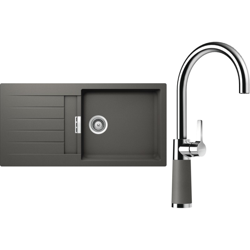 Cenově zvýhodněný set dřezu a baterie Schock S2-6 - obsahuje granitový dřez s odkapem Signus D-100L Silverstone a baterii SC-520 Silverstone.