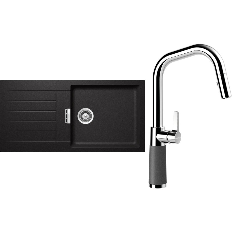 Cenově zvýhodněný set dřezu a baterie Schock S2-9 - obsahuje granitový dřez s odkapem Signus D-100L Stone a baterii se sprchou SC-530.120 Stone.