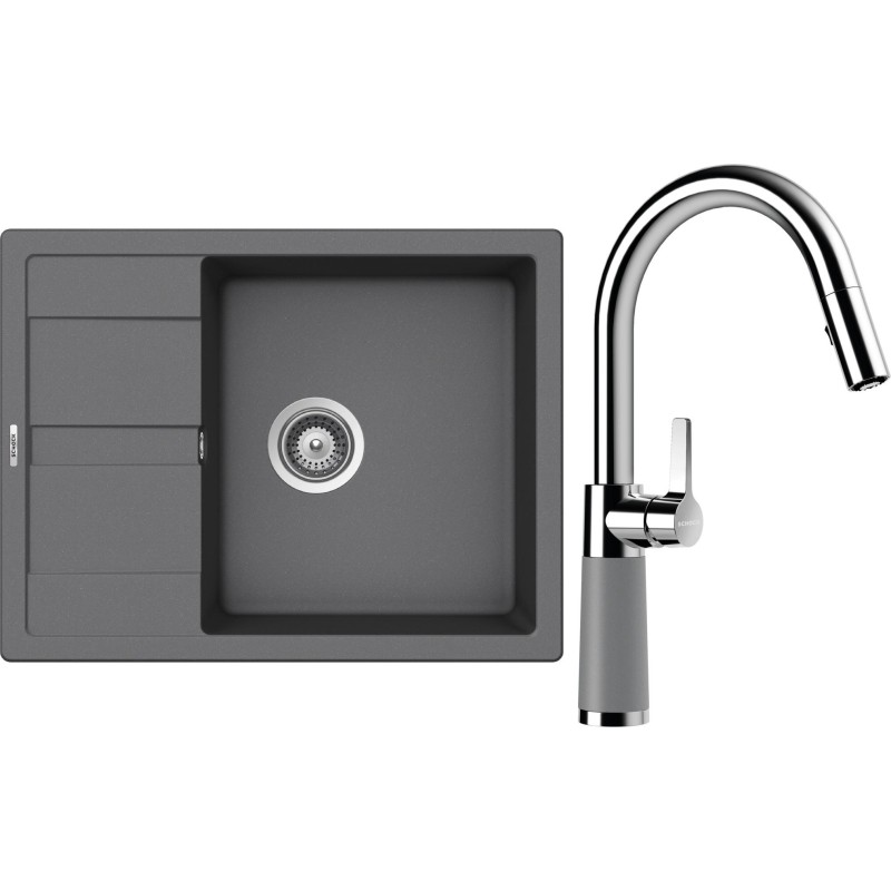 Cenově zvýhodněný set dřezu a baterie Schock S20-9 - obsahuje granitový dřez s odkapem Manhattan D-100 Croma a baterii se sprchou SC-520.120 Croma.