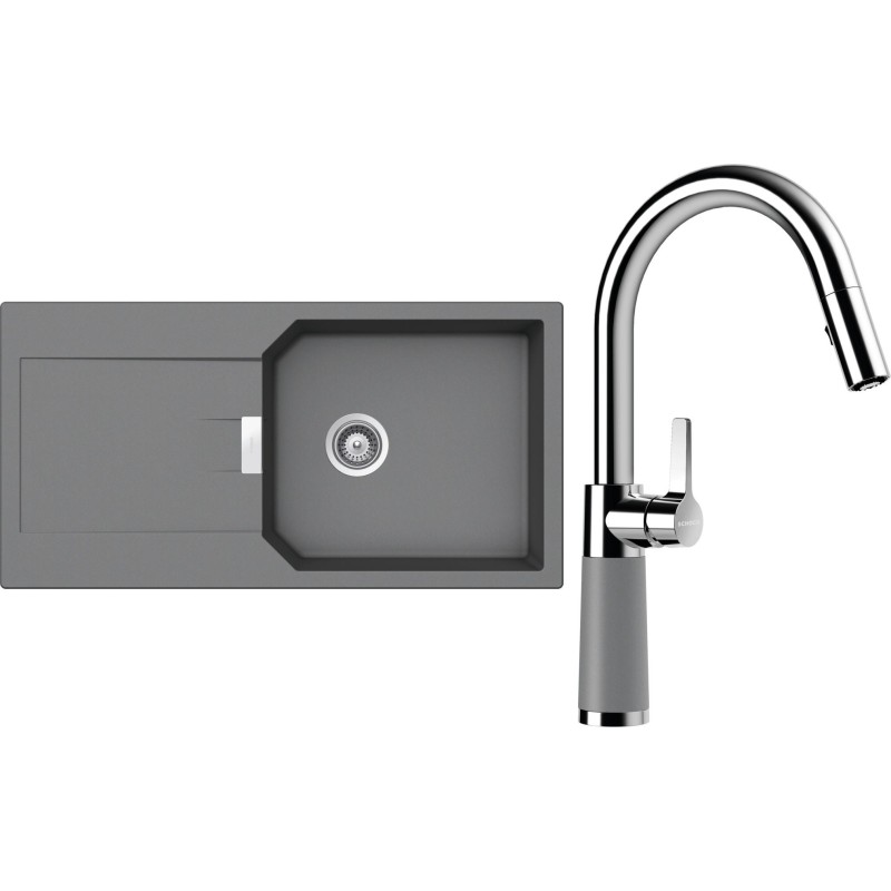 Cenově zvýhodněný set dřezu a baterie Schock S21-9 - obsahuje granitový dřez s odkapem Manhattan D-100L Croma a baterii se sprchou SC-520.120 Croma.