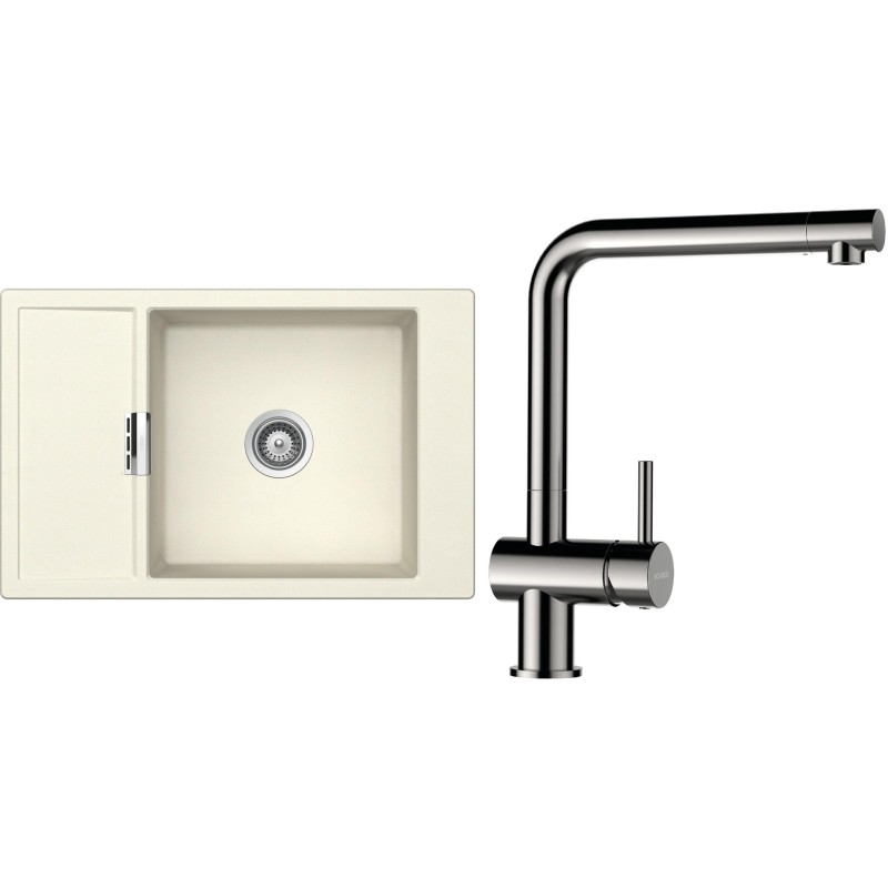 Cenově zvýhodněný set dřezu a baterie Schock S4-3 - obsahuje granitový dřez s odkapem Mono D-100XS Magnolia a baterii Epos Nerezový vzhled.
