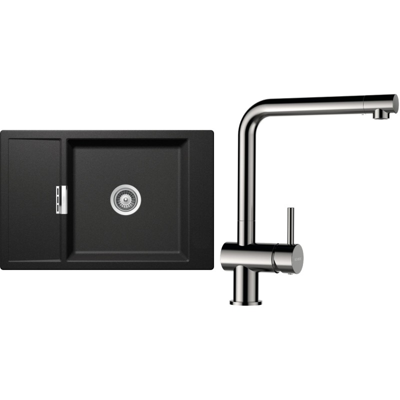 Cenově zvýhodněný set dřezu a baterie Schock S4-3 - obsahuje granitový dřez s odkapem Mono D-100XS Stone a baterii Epos Nerezový vzhled.