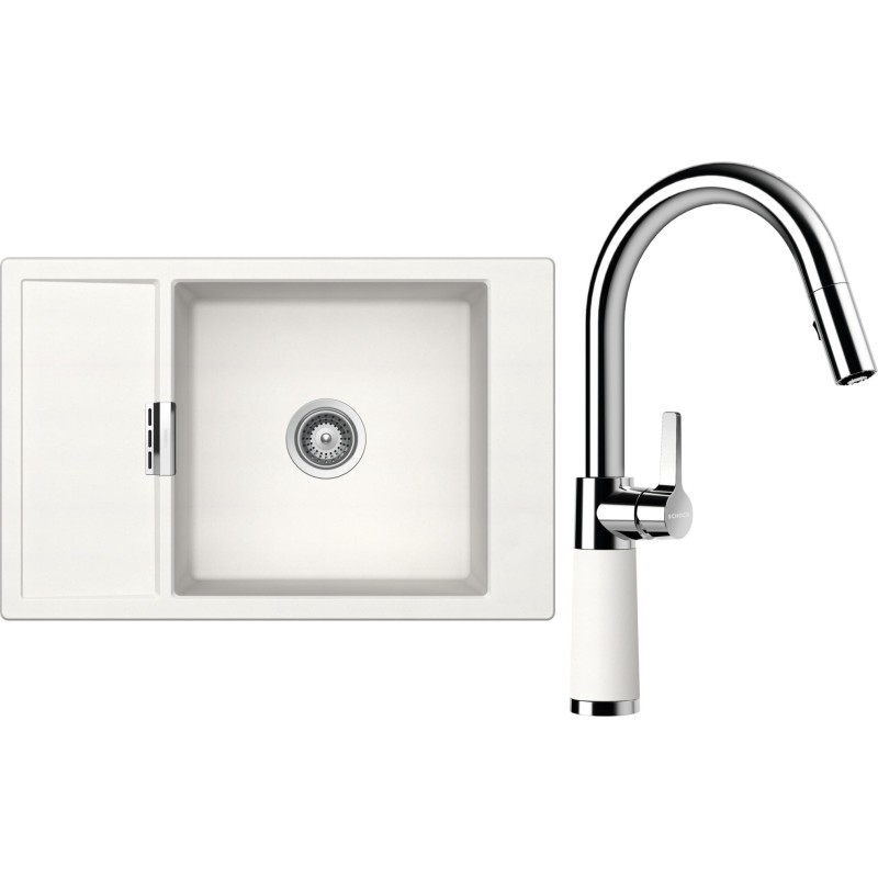Cenově zvýhodněný set dřezu a baterie Schock S4-7 - obsahuje granitový dřez s odkapem Mono D-100XS Polaris a baterii se sprchou SC-520.120 Polaris.