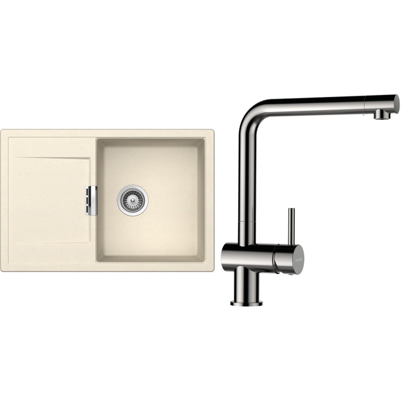 Cenově zvýhodněný set dřezu a baterie Schock S6-3 - obsahuje granitový dřez s odkapem Mono D-100 Magnolia a baterii Epos Nerezový vzhled.