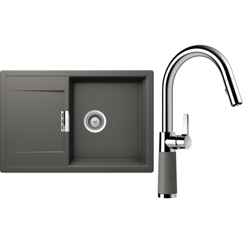 Cenově zvýhodněný set dřezu a baterie Schock S6-7 - obsahuje granitový dřez s odkapem Mono D-100 Silverstone a baterii se sprchou SC-520.120 Silverstone.