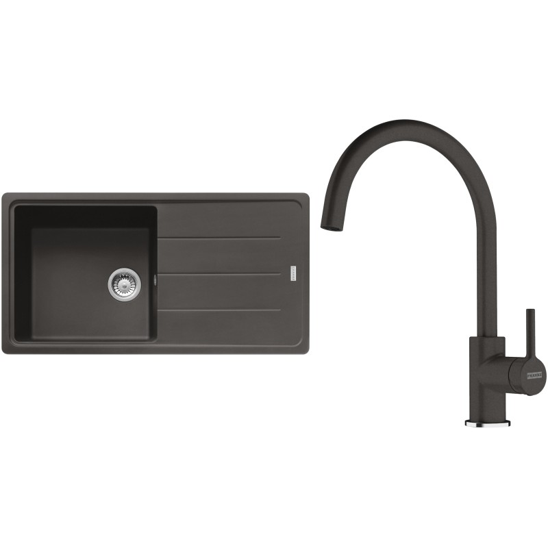 Cenově zvýhodněný set Franke G280ŠB obsahuje granitový dřez s odkapem BFG 611 Šedá břidlice a baterii FC 6018.088 LINA Šedá břidlice.