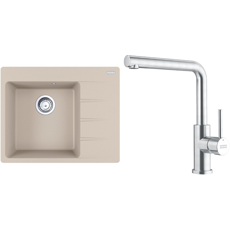 Cenově zvýhodněný set Franke G282SA obsahuje granitový dřez s odkapem CNG 611-62 TL/2 Sahara a baterii FC 6985.501 SMART GLENDA Celonerez.