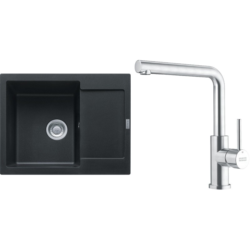 Cenově zvýhodněný set Franke G299O obsahuje granitový dřez s odkapem MRG 611-62 Onyx a baterii FC 6985.501 SMART GLENDA Celonerez.
