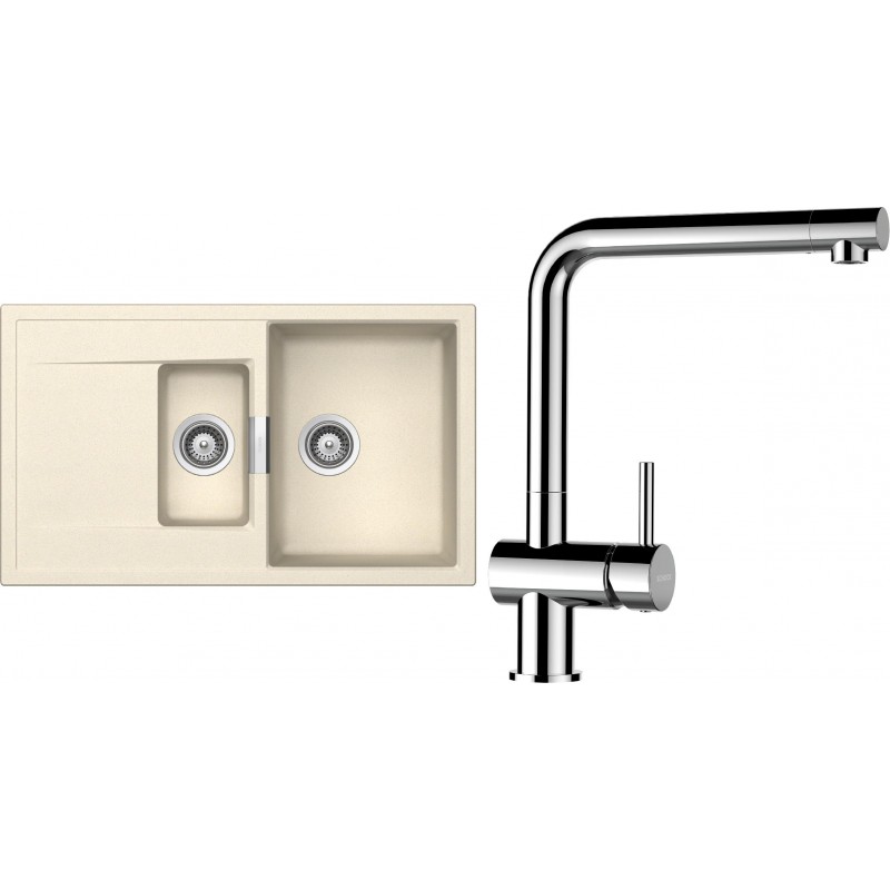 Cenově zvýhodněný set dřezu a baterie Schock S7-12 - obsahuje granitový dřez s vaničkou a odkapem Mono D-150 Magnolia a baterii Epos Chrom.