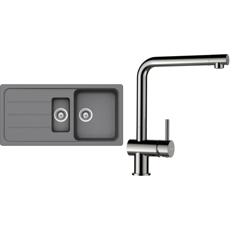 Cenově zvýhodněný set dřezu a baterie Schock S29-5 - obsahuje granitový dřez s vaničkou a odkapem Formhaus D-150L Croma a baterii Epos Nerezový vzhled.