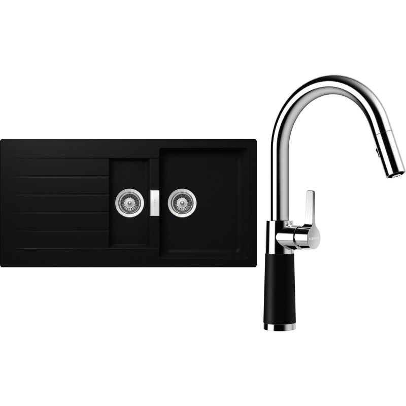 Cenově zvýhodněný set dřezu a baterie Schock S3-7 - obsahuje granitový dřez s vaničkou a odkapem Signus D-150 Puro a baterii se sprchou SC-520.120 Puro.