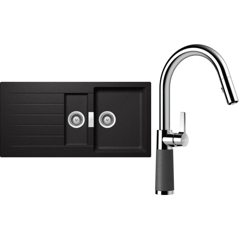 Cenově zvýhodněný set dřezu a baterie Schock S3-7 - obsahuje granitový dřez s vaničkou a odkapem Signus D-150 Stone a baterii se sprchou SC-520.120 Stone.