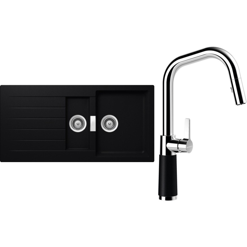 Cenově zvýhodněný set dřezu a baterie Schock S3-9 - obsahuje granitový dřez s vaničkou a odkapem Signus D-150 Puro a baterii se sprchou SC-530.120 Puro.
