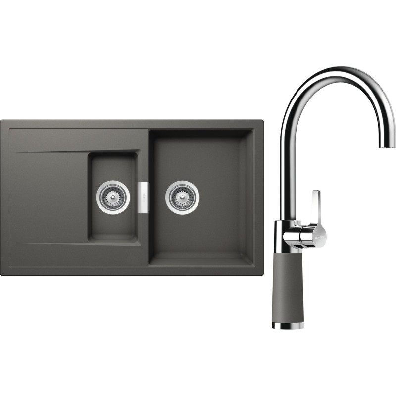 Cenově zvýhodněný set dřezu a baterie Schock S7-6 - obsahuje granitový dřez s vaničkou a odkapem Mono D-150 Silverstone a baterii SC-520 Silverstone.