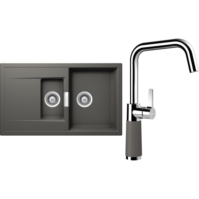 Cenově zvýhodněný set dřezu a baterie Schock S7-8 - obsahuje granitový dřez s vaničkou a odkapem Mono D-150 Silverstone a baterii SC-530 Silverstone.
