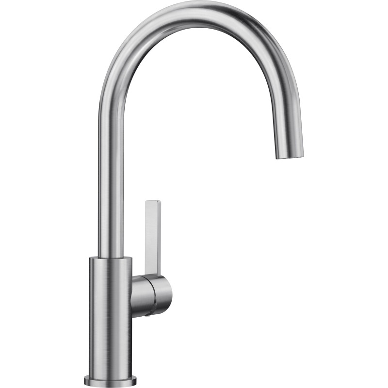 Stojánková dřezová baterie, ECO varianta se sníženým průtokem vody, provedení Nerez kartáčovaná, výška 368 mm, pro otvor 35 mm, otočná o 360 °.